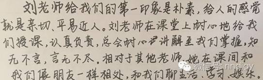 在课下,刘老师和我们像朋友一样相处,关心我们生活,为我们排忧解难,跟我们分享学习方法,鼓励我们多看书,多运动,多关注时事,树立目标。有时和我们分享生活中遇到的趣事和自己的生活经验,让我们受益匪浅。